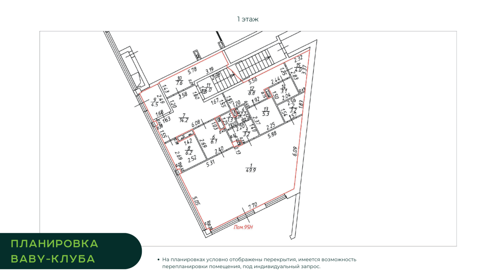 Общая площадь Общая: 89 м2, этаж: 1 (всего: 3)